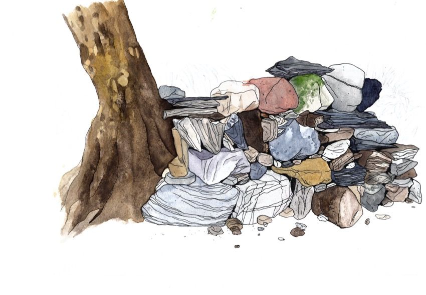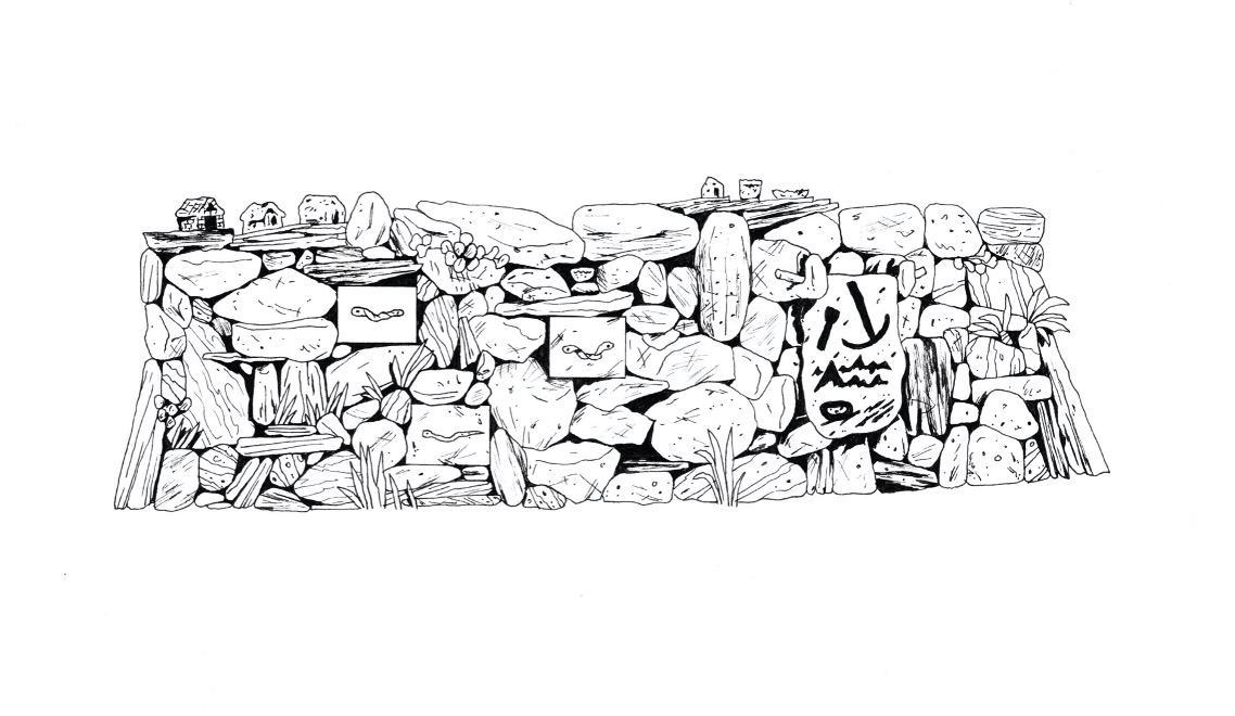 Le Muret du chemin délimite, marque la limite des champs, il retient la terre, il accompagne le voyageur sur ses allées et venues d’un village à l’autre. Il fut témoin des sons, des paroles, des pas, des histoires, des personnes qui ont vieilli.